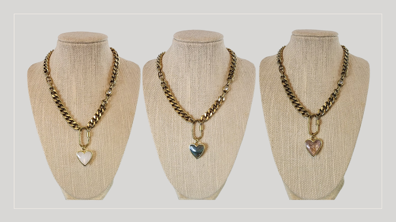Explore our handcrafted bronze heart necklaces with unique gemstones designed for everyday good energy.